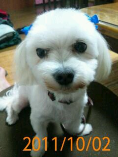 純血マルチーズ、足が短いのか胴が長いのか若干体のバランスが妙なれん君♪
